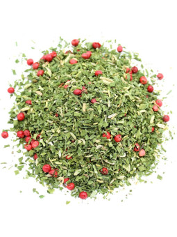 - Composition : ciboulette séchée, graines de fenouil, persil séché, baies roses, romarin séché.